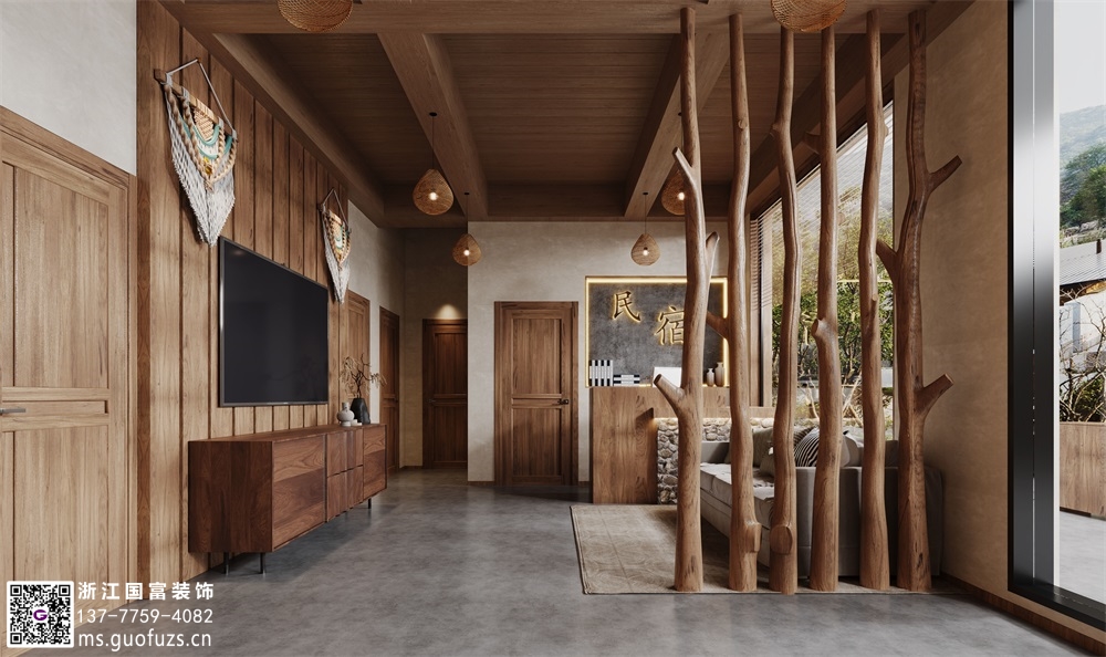 原木風(fēng)格民宿裝修設(shè)計效果圖